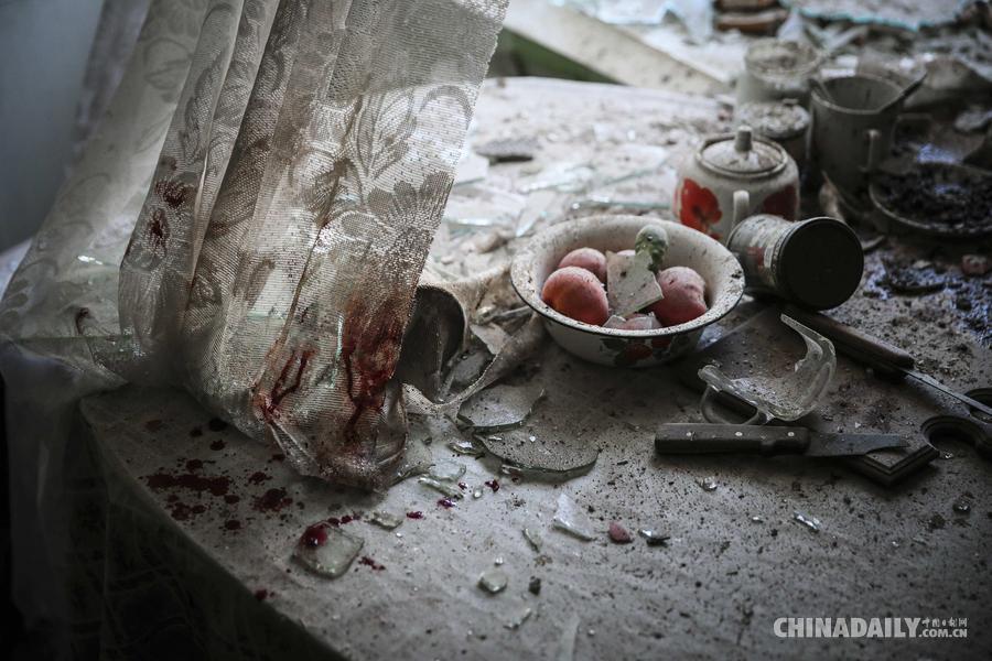 当地时间2015年2月12日,2015世界新闻摄影比赛结果在荷兰阿姆斯特丹揭晓,欧洲新闻图片社俄罗斯籍摄影师 Sergei Ilnitsky 的作品获得一般新闻类单张一等奖。图为2014年8月26日,乌克兰顿涅茨克,厨房内东西散落。