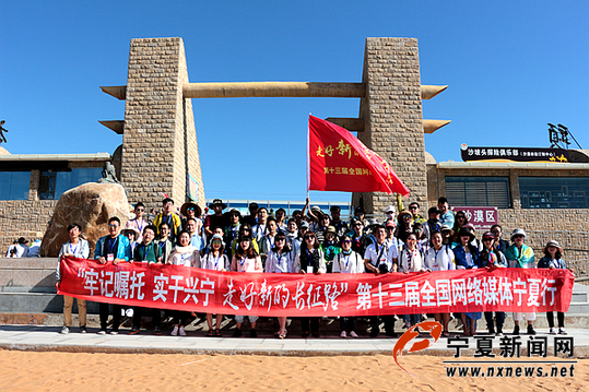 第十三届全国网络媒体宁夏行采访团齐聚沙坡头。