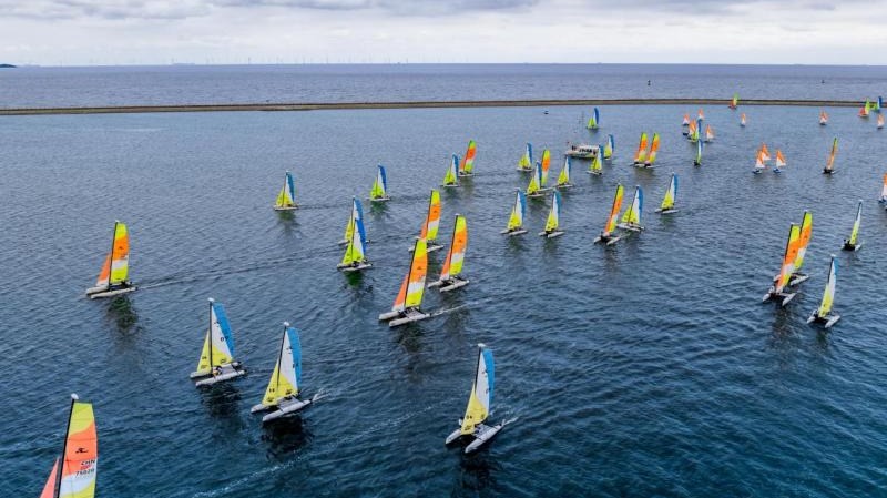 9月21日下午,在阴转多云的初秋时节,2025中国家庭帆船赛上海站在金山城市沙滩圆满收官。为期两天的赛程中,参赛船队经历了阵雨阵风等多变天气的考验,以及近70条船扎堆竞逐的挑战,最终完成了精彩的10轮比赛。2025-09-22 19:16