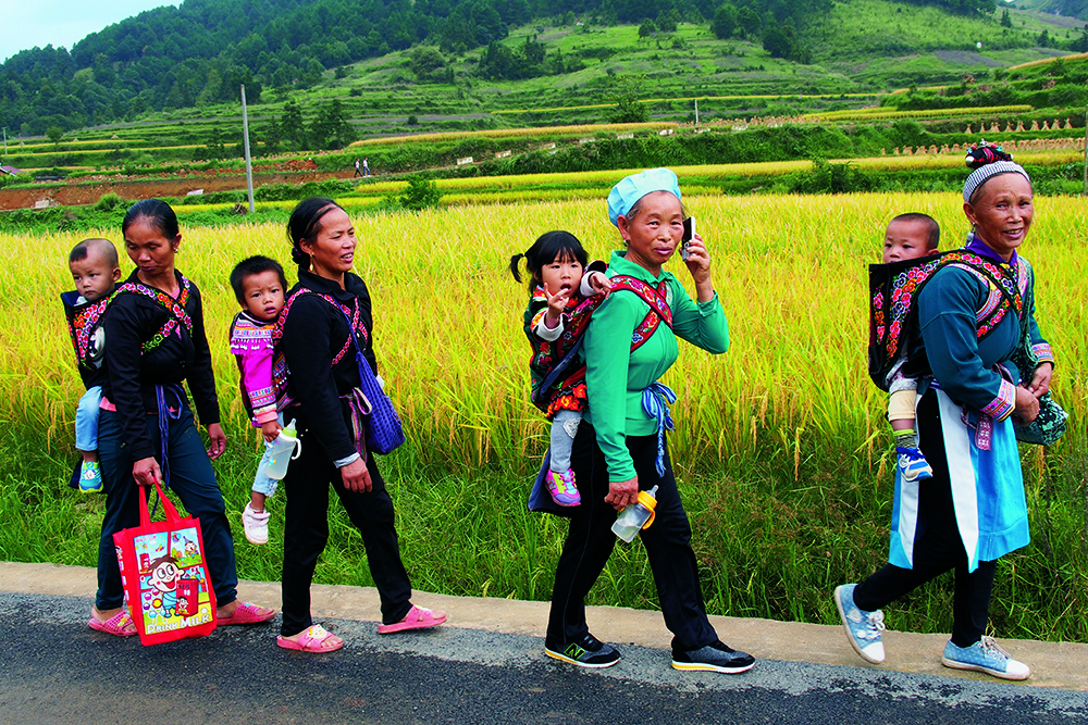 Relocated residents wait to see their new homes before they move in ahead of Spring Festival in Huize County, Qujing City of Yunnan Province on January 16, 2020. The relocation project was part of the county's poverty alleviation efforts. During the 13th Five-Year Plan (2016-20), Huize built 102 relocation villages for 105,068 residents.