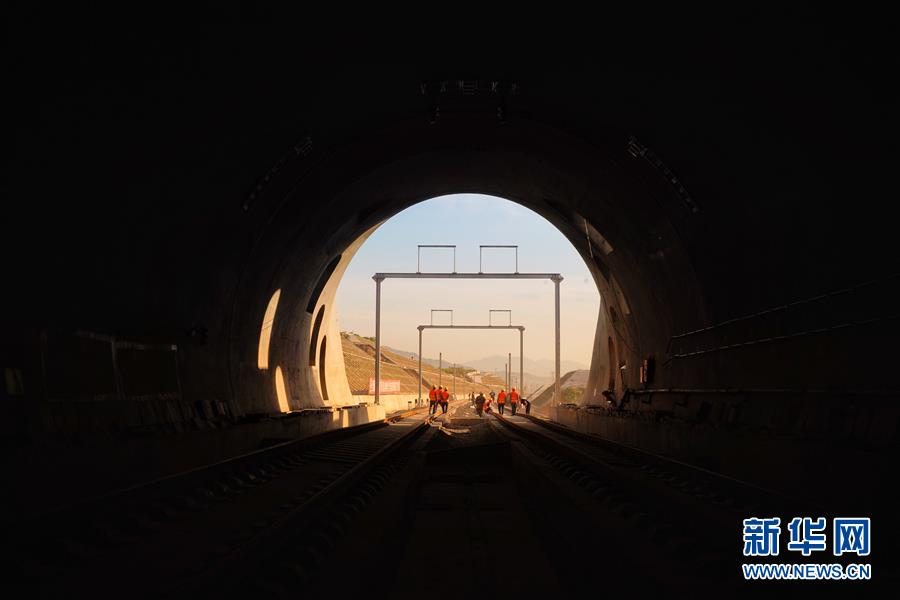 5月29日,工人在正盘台隧道进口施工。 崇礼铁路正盘台隧道位于河北省张家口市,全长12.974公里,是全线最长隧道。该隧道2016年4月开工,2019年5月21日完成铺轨。 新华社记者 邢广利 摄 图片来源:新华网