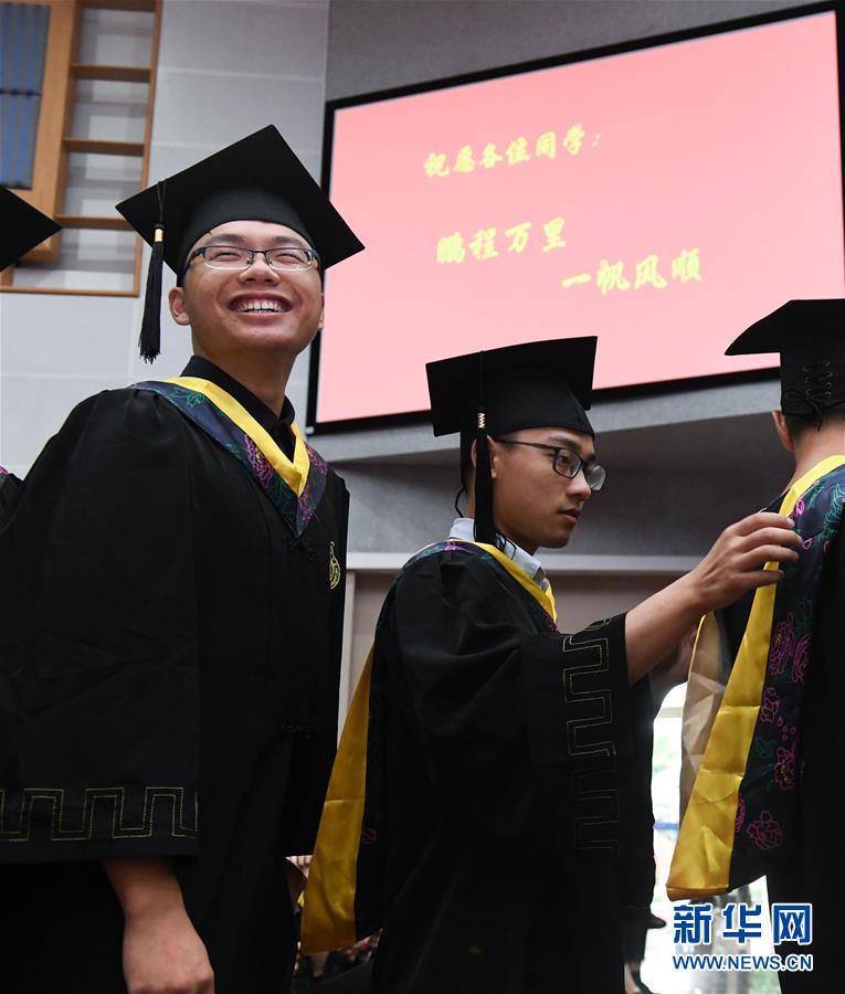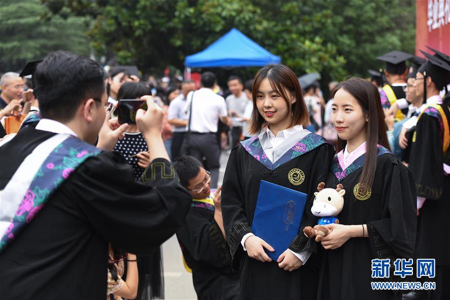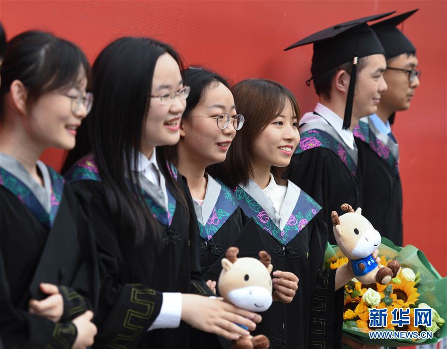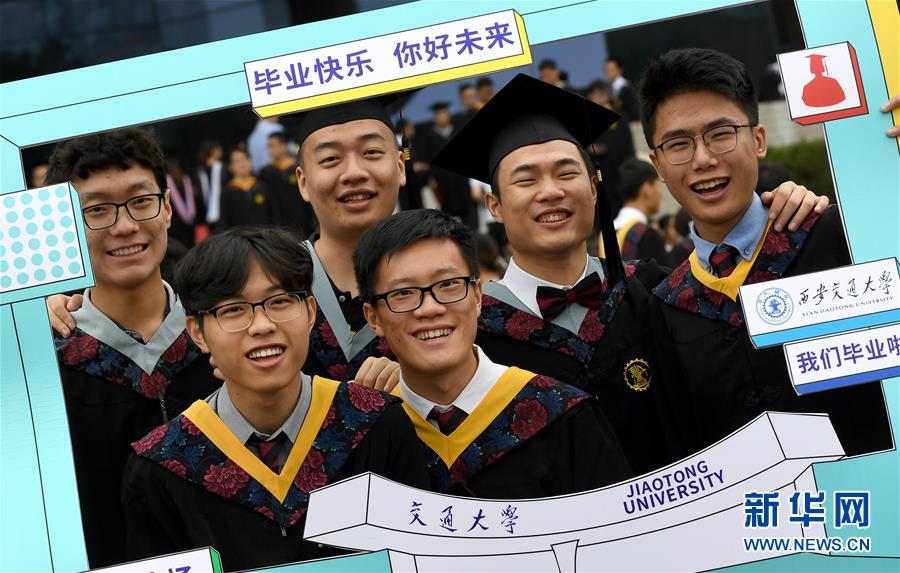 6月22日,毕业生在西安交通大学第110届(2019)学生毕业典礼暨学位授予仪式后合影留念。新华社记者 刘潇 摄