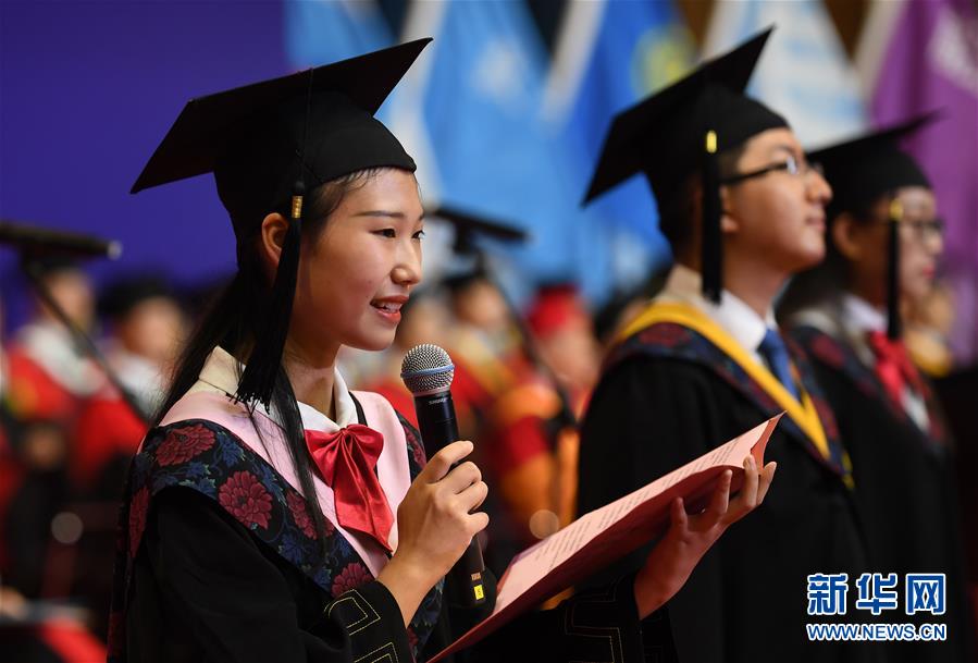 6月22日,毕业生代表在西安交通大学第110届(2019)学生毕业典礼暨学位授予仪式上发言。新华社记者 刘潇 摄