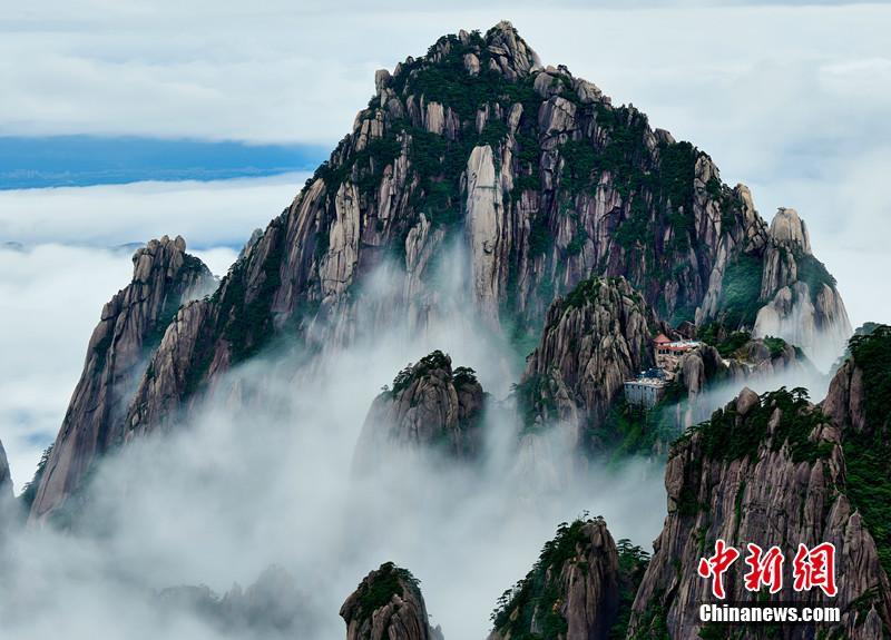 当日云海持续时间久,云雾缠绕山峦,如蒙白纱。杨绯 摄