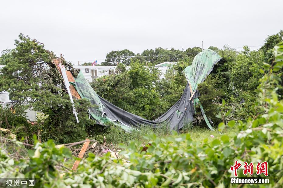当地时间2019年7月23日,美国马塞诸塞州,当地遭遇龙卷风侵袭。据悉,一场罕见的龙卷风以80英里(约129公里)的时速席卷了马塞诸塞州部分沿海地区,对当地树木和酒店造成严重破坏。 图片来源:视觉中国