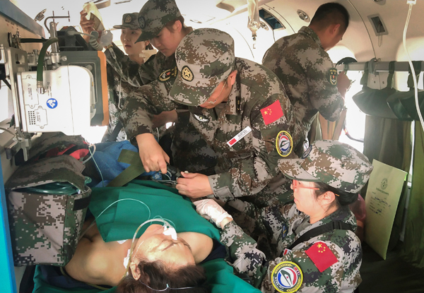 中国日报8月21日电 2019年8月20日,正在老挝参加中国—老挝军队“和平列车—2019”人道主义医学救援联合演训活动暨医疗服务活动的中国人民解放军赴老挝“和平列车”医疗队,20日携带急救药品和设备,前往琅勃拉邦参加对遭遇车祸同胞的救援行动。