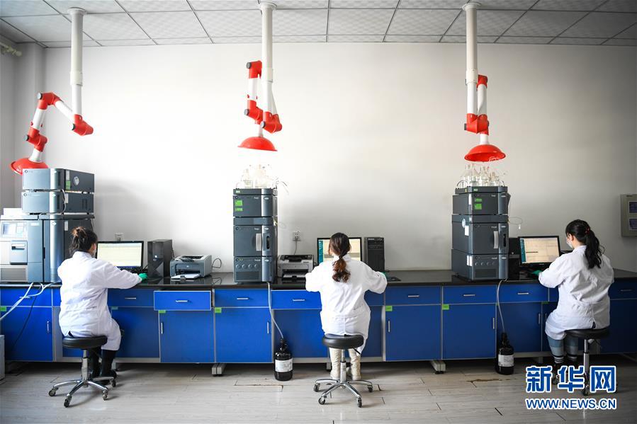 3月4日,在哈尔滨市康隆药业有限责任公司实验室,化验员在进行检测工作。 近日,哈尔滨市中药制药企业陆续复工,加紧恢复产能。 新华社记者 王松 摄