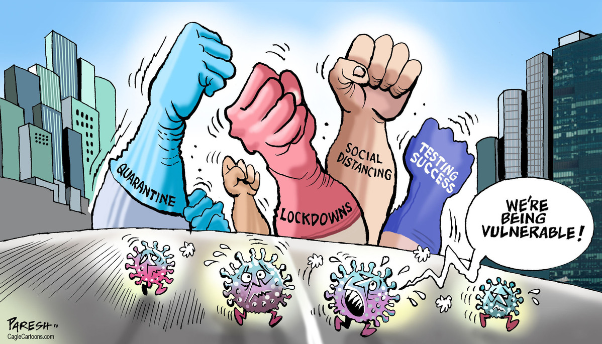 采取科学的防控措施,新冠病毒是完全可以战胜的。(来源:中国日报 Paresh Nath《中国日报》2020年4月27日8版)