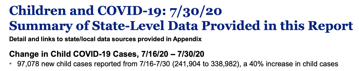 就在白宫要求全美学校在秋季开启“面对面”线下教学模式后不久,美国儿科学会(AAP)和儿童医院协会(Children's Hospital Association)发布了一份美国儿童感染新冠肺炎的最新数据报告。