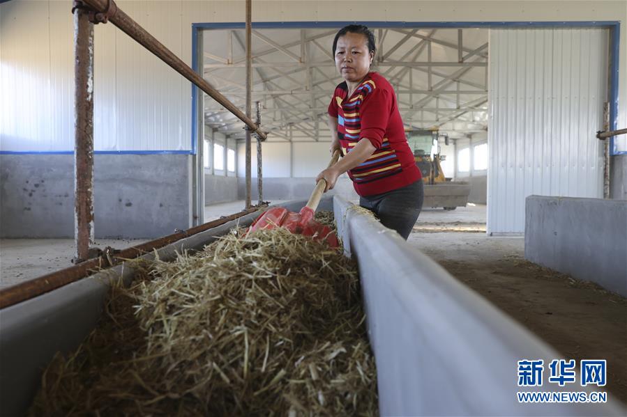 8月20日,在富锦市向阳川镇东兴村锦东畜禽养殖合作社内,工人在给牛准备饲料。 近年来,黑龙江省富锦市向阳川镇东兴村引进黄牛养殖项目,采取“支部+合作社+村集体+农户+贫困户”的模式,带动向阳川镇173户贫困户入股合作社,增加贫困户收入,促进村民增收。 新华社发(张涛 摄)