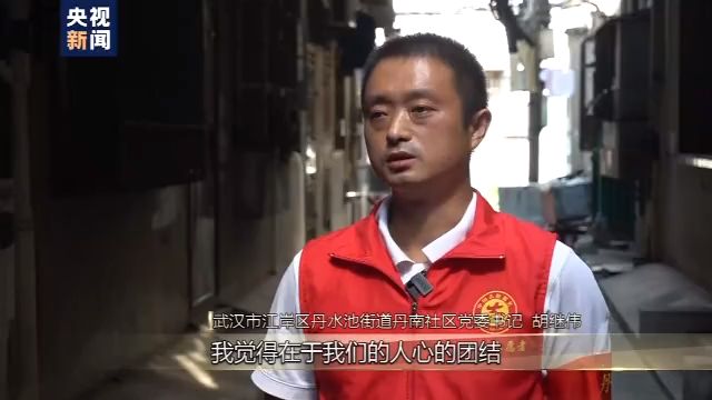 武汉市江岸区丹水池街道丹南社区党委书记 胡继伟:这次抗疫成功,我觉得在于我们的人心的团结。有一次有一个老人瘫痪在床的,突然生病了,打电话到我们社区来,寻求就医帮助。很多下沉的党员干部,还有我们的志愿者,都在报名,说算我一个。