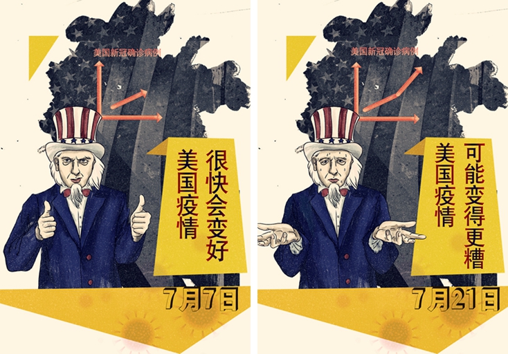 美国新冠肺炎确诊病例数持续上升。7月7日,美国总统接受美国媒体采访时表示,美国疫情很快就会变好。但在7月21日的白宫新冠疫情简报会上,他却改口说:“(疫情)可能在变得更好前变得更糟。”
