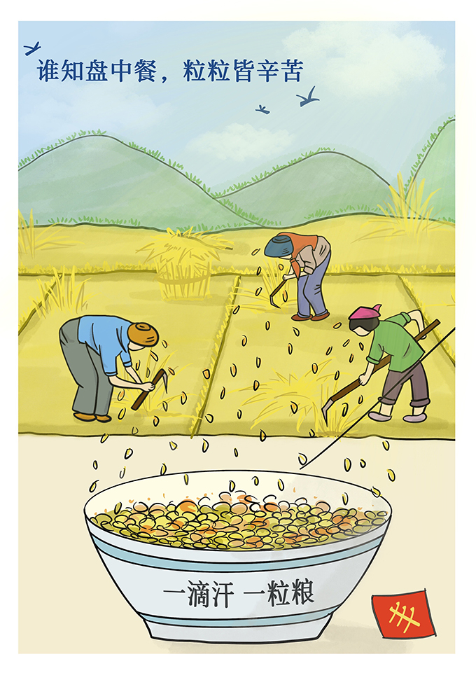 谁知盘中餐,粒粒皆辛苦。这个九月,我们迎来“中国农民丰收节”,可能鲜有人知道,“国际粮食损失和浪费问题宣传日”也在九月。不管是偶然还是凑巧,两者碰撞总能带给我们一些思考——春种秋收,对我们来说是短短的四个字,但对于农民来说,这些倾注了他们一年的心血,挥洒了一年的汗水。一米一粟来之不易,我们理当珍惜每一粒粮食。做饭时,吃多少做多少;吃饭时,吃多少盛多少;点餐时,吃多少点多少。总之,食之有道,量力而行,量入为出。