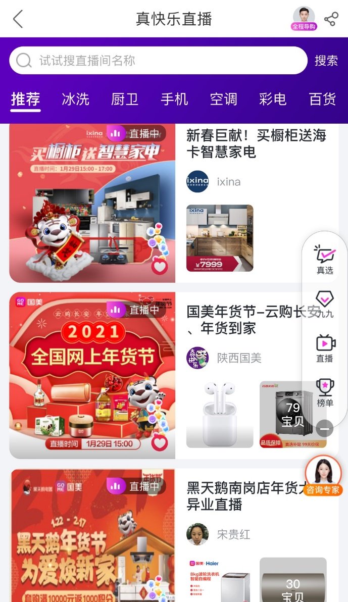 同时结合线上的视频导购,视频面对面,贴心服务,随时在线,大大提升用户体验感,再加上快乐直播、ZAO赛事等娱乐功能,使得用户在“真快乐”APP可以愉快逛、称心挑、尽兴播、快乐赛,全面升级用户的快乐购物体验。