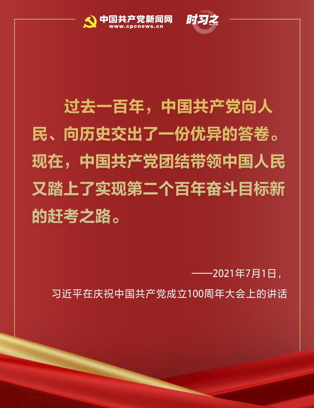 2021年7月,建党百年的辉煌时刻,习近平总书记在庆祝中国共产党成立100周年大会上庄严宣告,“现在,中国共产党团结带领中国人民又踏上了实现第二个百年奋斗目标新的赶考之路。”