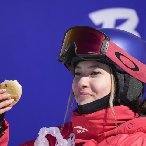 She has become the "red bean bun girl" in China after the scene was livestreamed globally that she was taking a crushed, flattened bun out of her competition suit pocket and had a big bite with a huge smile on her face during the breaks of her halfpipe qualifying run.