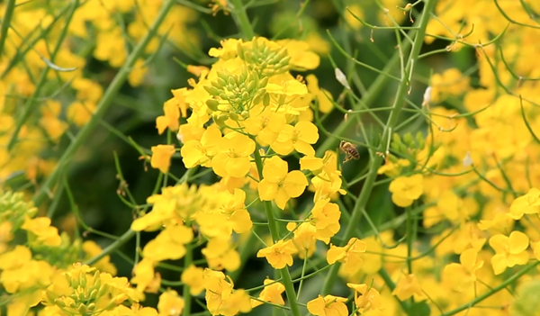 走进通许县冯庄乡小城村的油菜花海,金黄色的花朵绚丽盛开,从远处看,就像一片金色的海洋,春风吹过,涌起一股又一股金色波浪,在阳光的照耀下,闪耀着金光,甜甜的花香不时引来勤劳的蜜蜂,忙碌地穿梭在花丛间,犹如一幅春意盎然的山村花海图。花海内,除了穿梭其中的蜜蜂,还有看花的游客。他们漫步在田间,徜徉在花海中,享受着田园风光,美不胜收的景色让大家纷纷驻足拍照,合影留念。