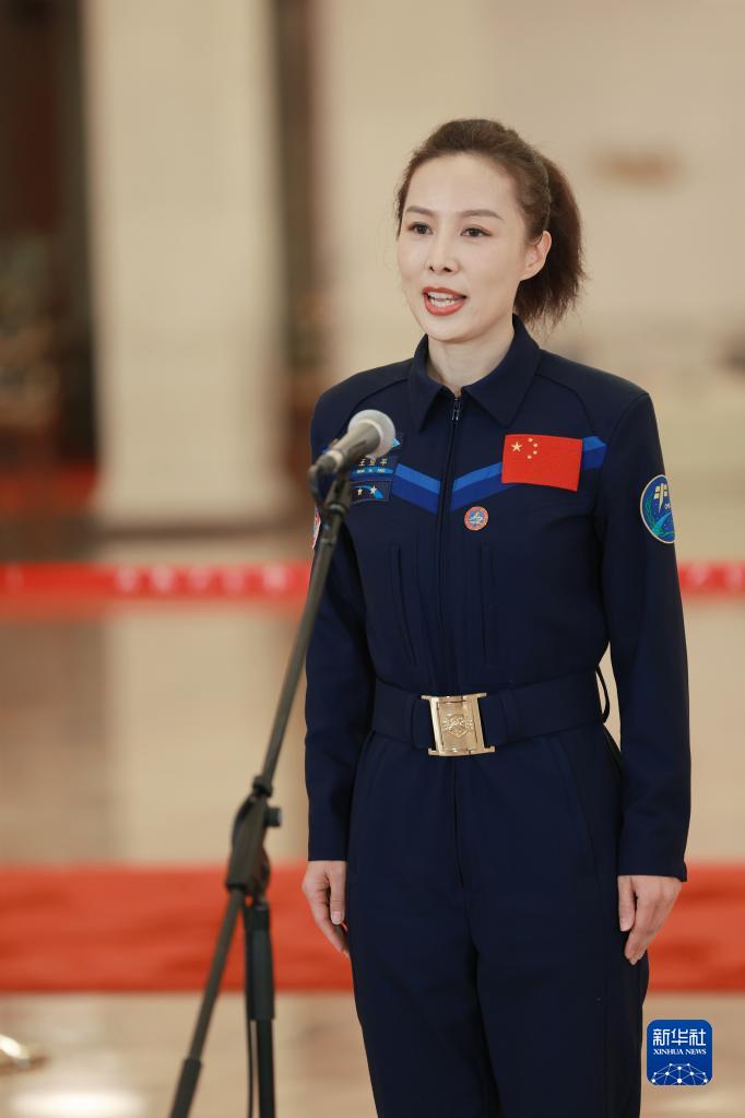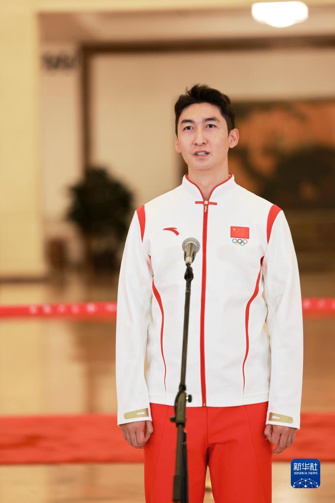 这是开幕会前,朱有勇、王亚平、武大靖代表(自左至右)接受采访。