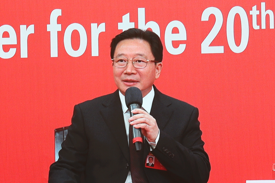 中国日报北京10月19日电(记者 王壮飞)2022年10月19日,中国共产党第二十次全国代表大会新闻中心举行第三场集体采访,请山东、河南、湖北、湖南、广东、广西、海南代表团新闻发言人出席,介绍代表团学习讨论二十大报告情况,并回答记者提问。