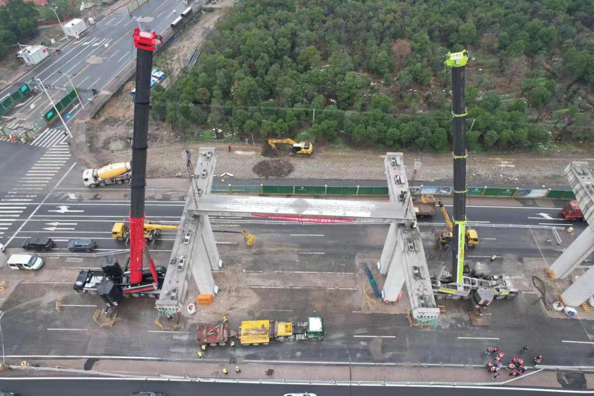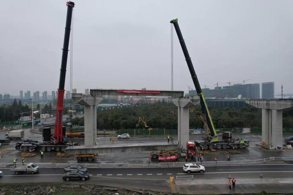 该项目位于浙江省绍兴市越城区,主要建设内容为全长3.1公里的高架及地面道路。此次架设的预制箱梁高1.6米,宽2.676米,长28米,重量约132吨,采用两台汽车吊双机抬吊的方式进行配合安装。为确保节点顺利完成,项目部围绕吊装作业工况、吊装站位、吊装顺序、小箱梁运输路线、小箱梁临时存放位置、吊装过程中的交通组织等全方面精心组织,提前模拟施工,制定完善专项方案和应急预案,合理配置各项资源,并进行安全技术交底,全力保障作业安全。起吊、提升、转向、落梁,12月2日上午9时,在作业人员的默契配合下,首片预制箱梁架设成功,标志着项目顺利进入高架桥上部结构施工新阶段。