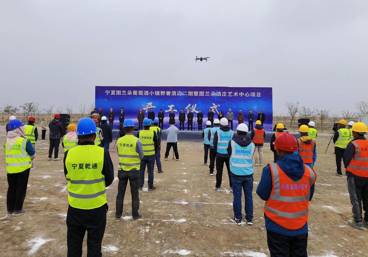 4月24日,宁夏图兰朵葡萄酒小镇野奢酒店二期暨图兰朵酒庄艺术中心项目正式开工。