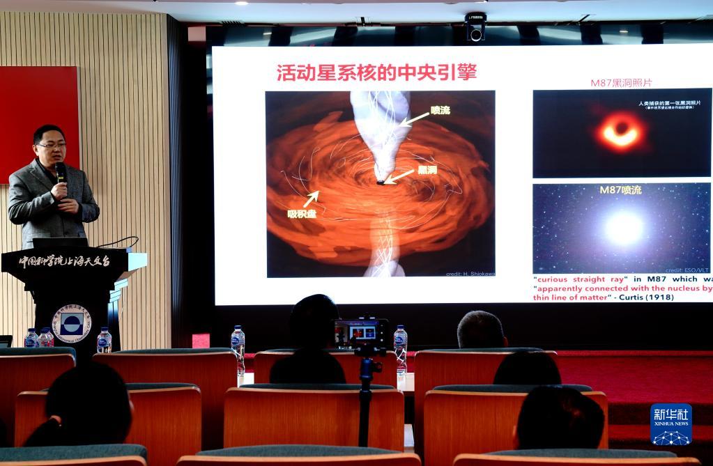 4月26日,中科院上海天文台研究员路如森在新闻发布会上介绍观测成果。新华社记者 张建松 摄