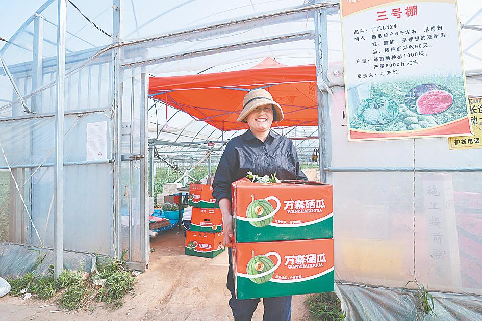 5月,温度骤升,成熟的大棚西瓜被装箱售卖,农民天天笑得合不拢嘴。一位农民介绍,这一车车的西瓜,还没成熟就被订购了,而且价格较高,比种其他农作物挣钱。“你瞅瞅,这一箱箱的西瓜都被人买走了,现在是供不应求。”