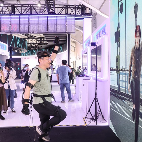 A visitor experiences metaverse digital virtual human at the exhibition of the 2023 Zhongguancun Forum in Beijing, May 28, 2023. [Photo/VCG]