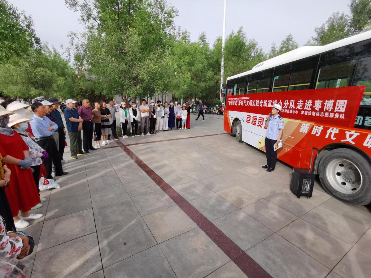 据了解,灵武市依托“幸福灵武”新时代文明实践专线,深入城乡社区、公园广场等地开展学习实践科学理论活动,探索出贴近实际、贴近群众、贴近生活的基层理论宣讲新路径,打通理论宣讲服务基层群众的“最后一公里”,实现了群众与理论宣讲零距离。