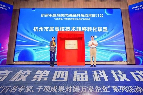 罗卫红、邵雪荣共同为“杭州市属高校技术转移转化联盟”揭牌
