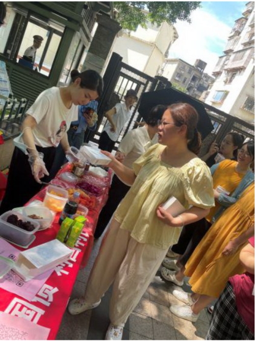 工作人员自制了新鲜的解暑仙草蜜,在这个炎炎夏日,为客户送去清凉,抵御酷暑。客户们一边与工作人员谈论美食制作,一边咨询保险信息,活动现场气氛热烈。