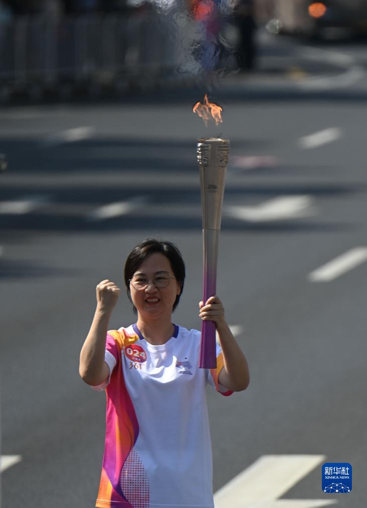 9月9日,火炬手周苏红在火炬传递中。新华社记者 徐昱 摄
