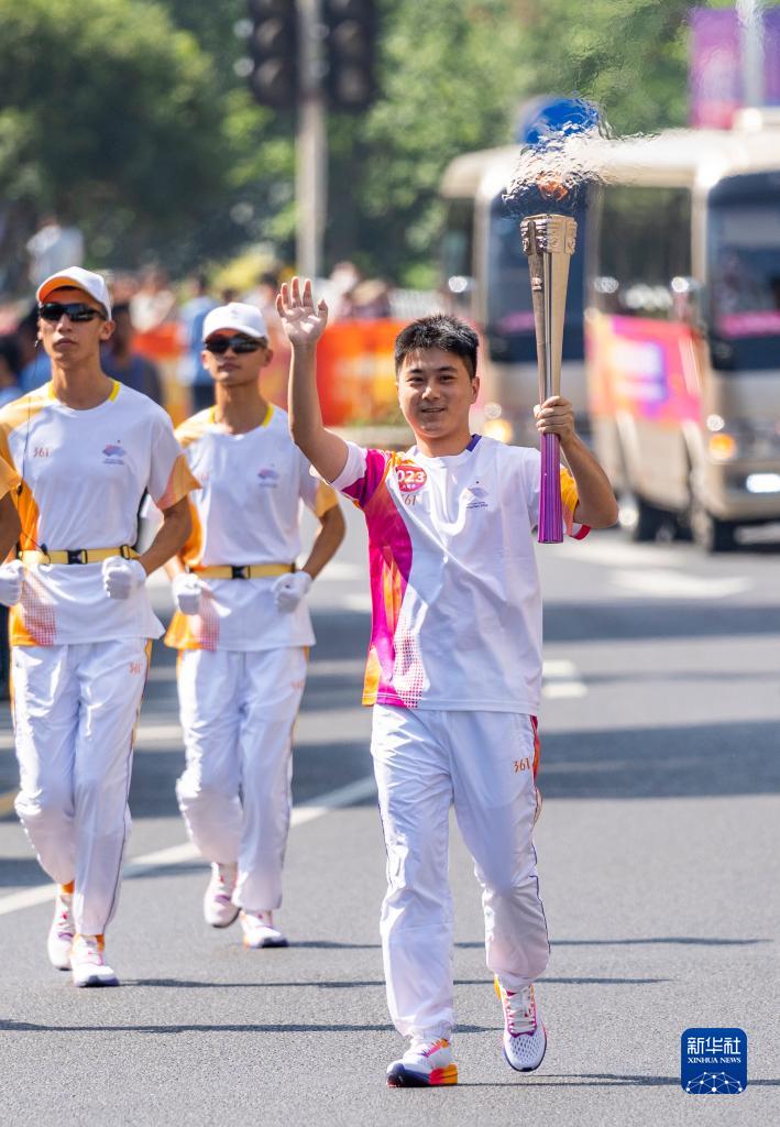 9月9日,火炬手钱智权在火炬传递中。新华社记者 孙非 摄