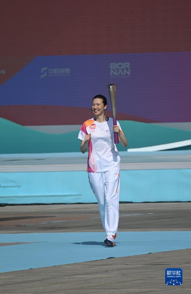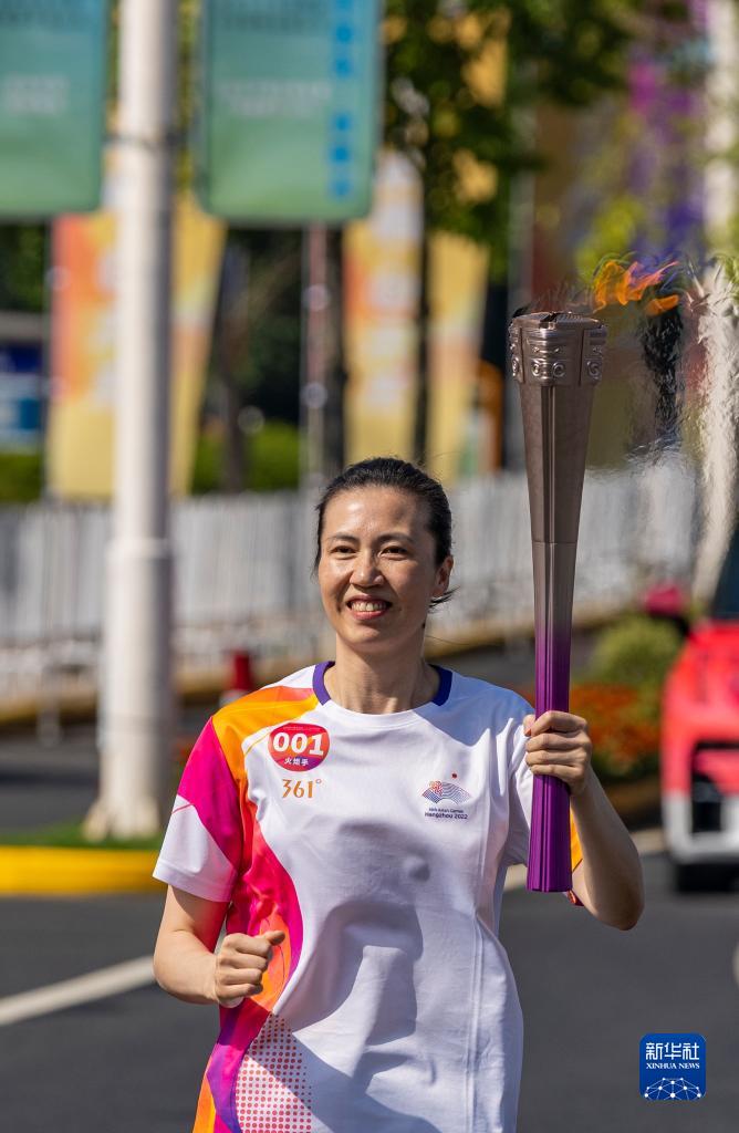 9月9日,火炬手张珊在火炬传递中。新华社记者 徐昱 摄
