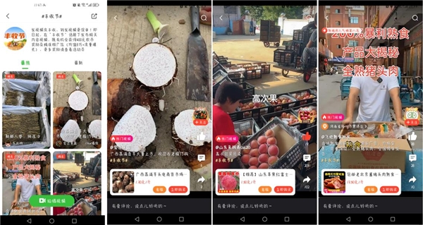 丰收节期间,商家争相参与“视频晒丰收”活动,发布丰收景象、当季好货、辛勤笑脸等主题视频近2万条。视频总播放量超13万次、单条最高播放数超14000次,全面展现全国各地的丰收盛况,高效带动优质产品销售。