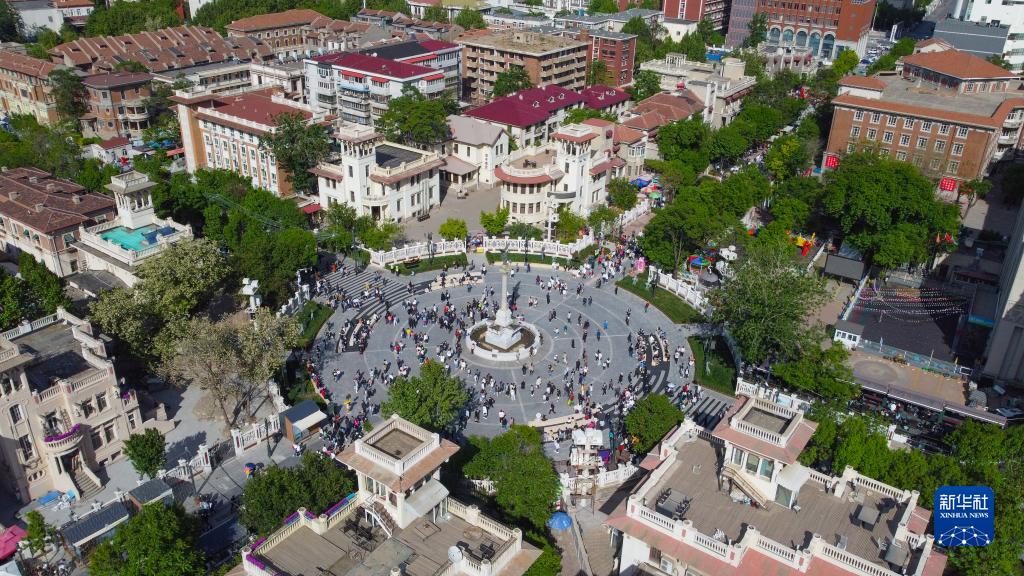 这是2021年5月1日拍摄的位于天津市河北区的意式风情街马可波罗广场(无人机照片)。