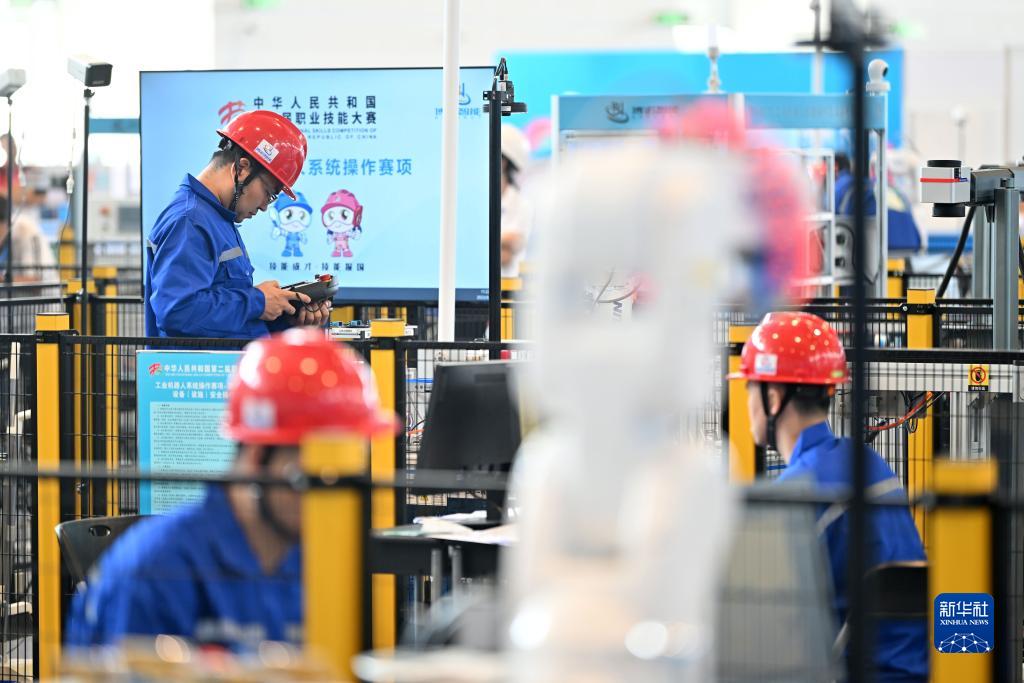 9月16日,选手在中国第二届职业技能大赛上参加工业机器人系统操作项目比赛。