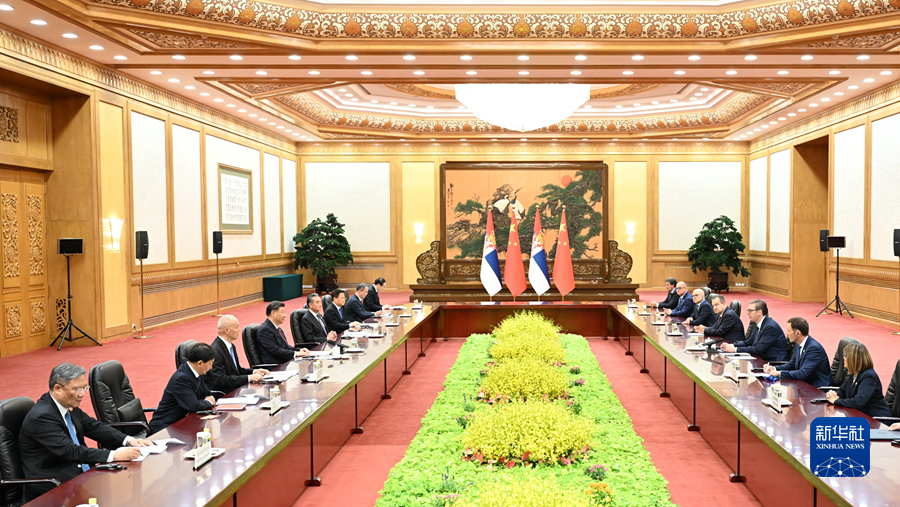10月17日下午,国家主席习近平在北京人民大会堂会见来华出席第三届“一带一路”国际合作高峰论坛的塞尔维亚总统武契奇。