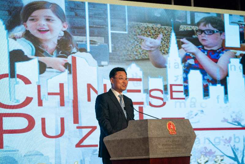 《中文拼图·我在美国学中文》采访和拍摄了40多名学习和教授中文和中国文化的美国人士后制作而成,系首部全景式、系统化展现中文“教”与“学”在美发展历史、现状及演变的纪录片。纪录片出镜人士代表和家属,华盛顿育英公立特许学校、西德威尔友谊学校、国家大教堂学校、圣奥尔本斯学校、兰顿学校、巴尔的摩国际学校、哈迪初中、百年高中、米德高中等美国中小学师生、家长及各界友好人士共400余人参加了当晚的首映式。