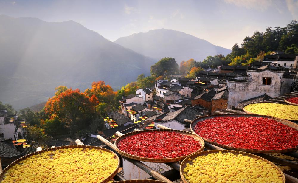 位于江西上饶市婺源县的篁岭村,被称为“挂”在山崖上的村庄,因独特的“晒秋”景观享誉海内外。篁岭村距今已有580多年历史,现存100多栋明清古建,是研究徽派古建遗存的重要样本。在发展乡村旅游过程中,篁岭村注重将传统村落风貌与活态非遗有机结合,为大众创造了体验和享受传统文化的新载体。