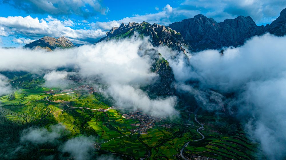 平均海拔2800米以上的扎尕那村,藏语意为“石匣子”。这个位于甘肃省甘南藏族自治州迭部县的村子,山势奇峻、云雾缭绕、宛如仙境。扎尕那村拥有高寒草原、温带草原和暖温带落叶林三大植被类型,扎尕那村民在山下耕种、半山放牧、林间采摘,形成了独特的农林牧复合系统,被联合国粮农组织认定为全球重要农业文化遗产。
