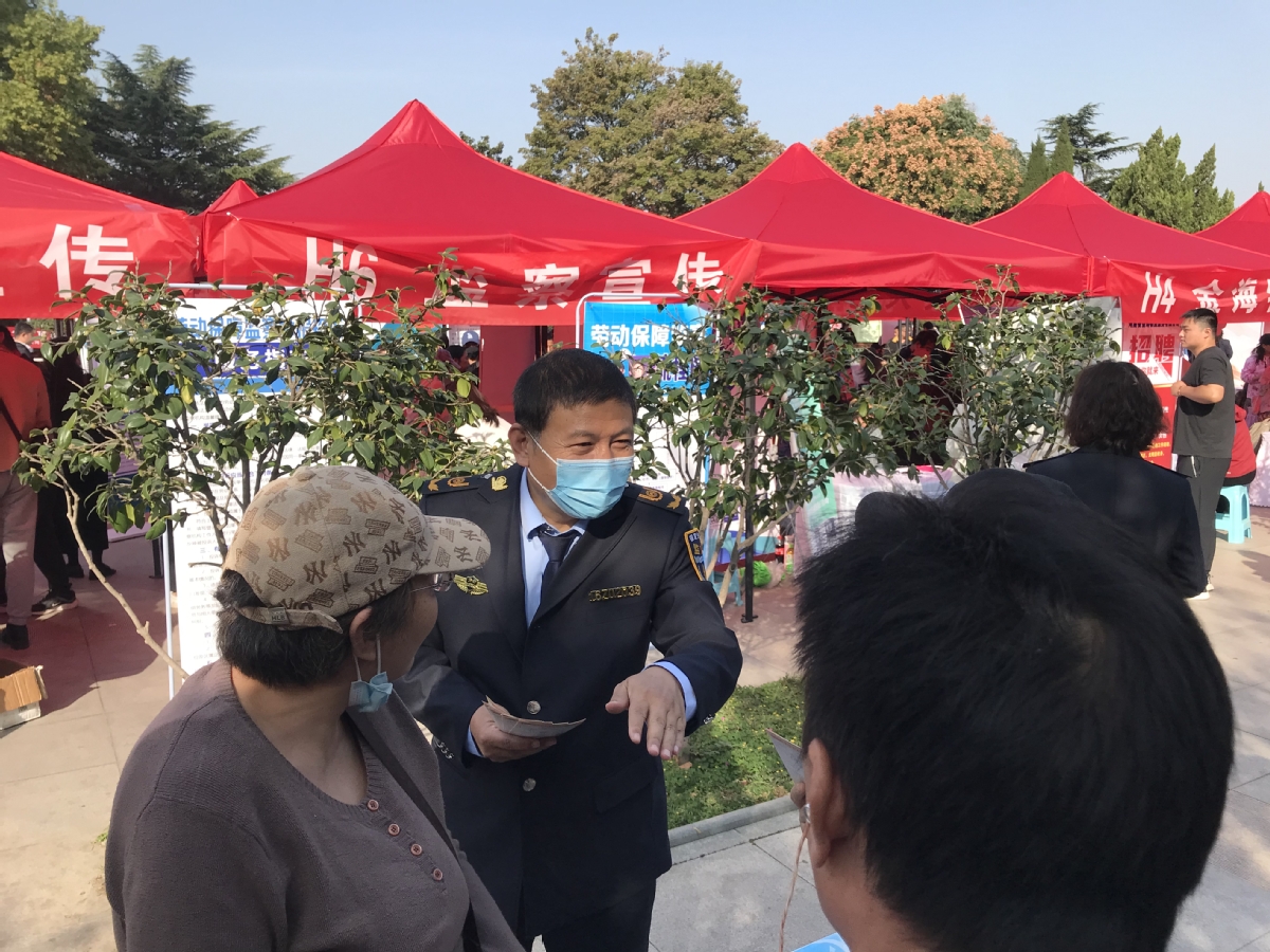 为进一步提高广大劳动者和用人单位遵法、守法意识,维护劳动者和用人单位双方的合法权益,构建和谐劳动关系。近日,开封市顺河回族区劳动保障监察大队以金秋招聘会为契机,在汴京公园广场前开展“劳动保障监察”普法宣传活动。