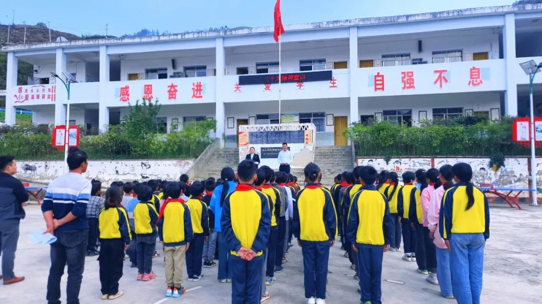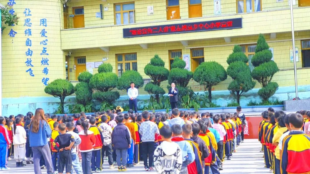 (鸠戛乡中心小学操场上举行的“理论宣传二人讲”)