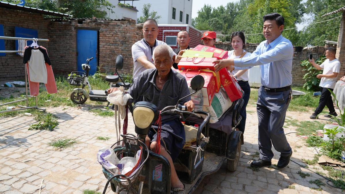 看到慰问人员从外边走进来,冯国增老人显得十分激动,眼里流出了激动的泪水。“有党的好政策,俺现在的生活比蜜还甜嘞。”放下米面油,慰问人员将冯国增老人围在中间,话家常、唠麦收,笑声不时从小院传出。
