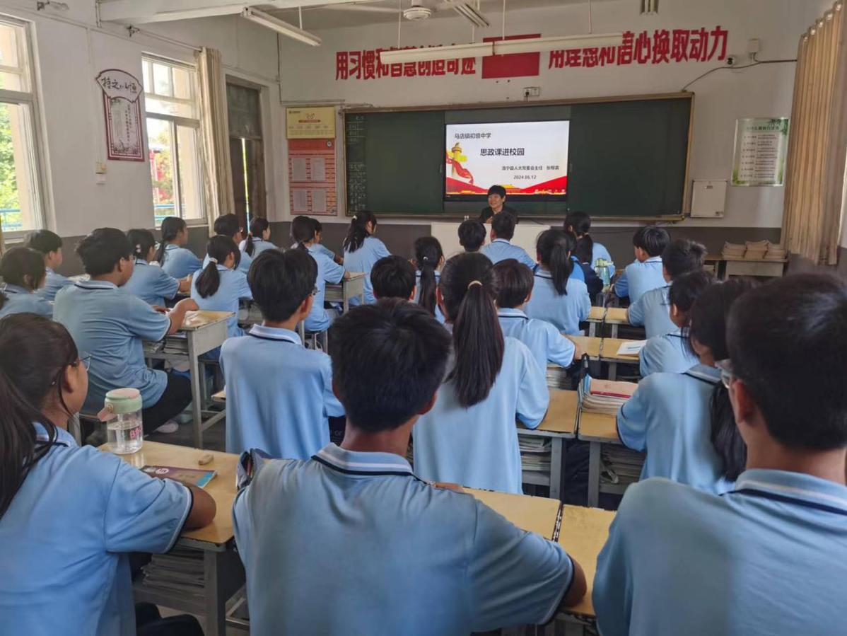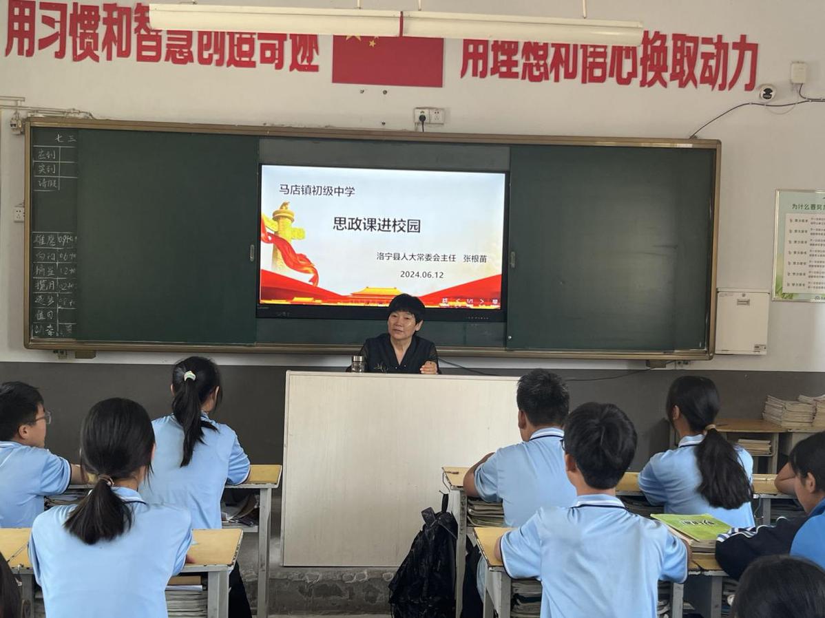 孩子们积极踊跃发言提问,授课代表近距离答疑解惑,课堂氛围活跃欢快......2024年6月12日上午,河南省洛阳市洛宁县人大常委会主任张根苗走进洛宁县马店镇初级中学,为该校七年级三班的学生带来了一堂别开生面的思政课——《争做新时代好少年》。