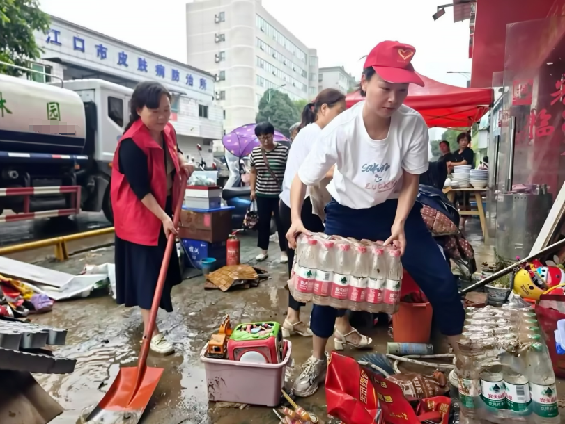 为将商户的损失降到最小,丹江口市各企事业单位及群众团体纷纷集结,深入受灾严重的街道,帮助清理店内淤泥、整理货架,有序开展灾后消毒工作。