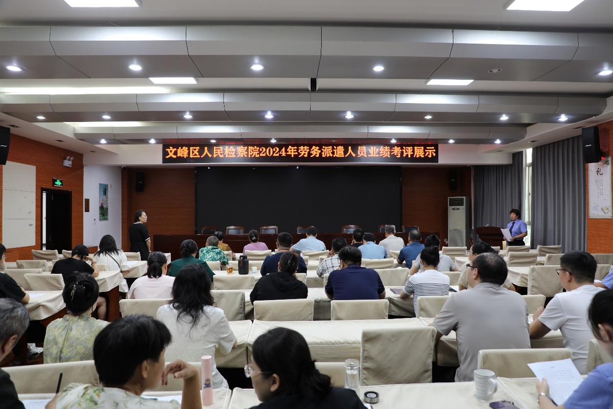为进一步提升劳务派遣人员综合素质和工作水平,增强责任担当意识,更好地服务、保障检察工作。7月25日,安阳市文峰区人民检察院召开劳务派遣人员半年业绩展示会,院党组书记、检察长呼雪峰,班子成员、各部门主要负责人参加。