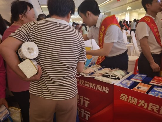 交通银行湛江分行在宣传摊位主动宣讲,派发折页、宣传册,并接受群众现场咨询,就群众关心百姓关切的热点难点问题进行多角度、深层次的讲解普及。