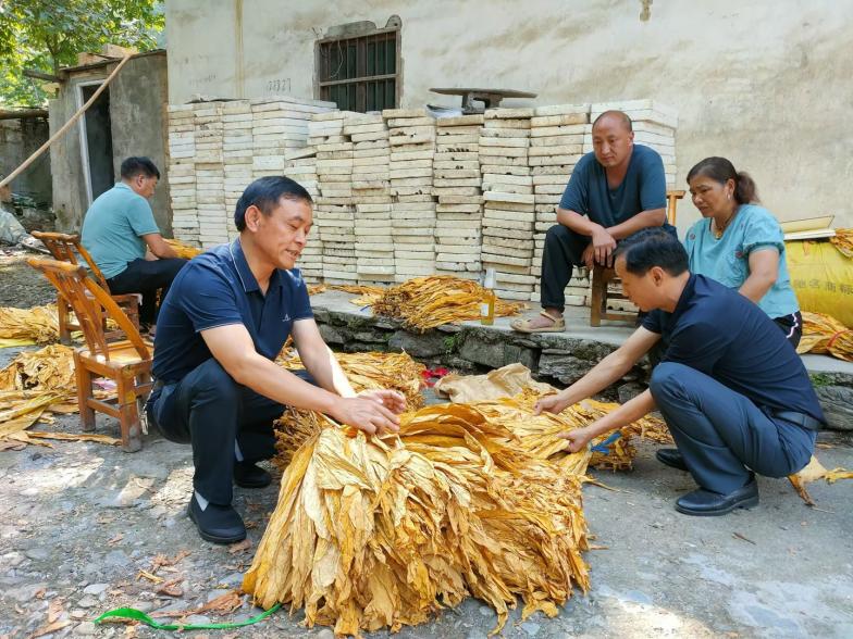 烟叶收购前夕,既忙碌,又有温情存在。竹溪县烟草专卖局(营销部)烟叶技术员们以饱满的热情和严谨的态度,投身于这场关乎烟农切身利益的重要工作中。他们忙中有序,不仅用专业技能为烟农提供精准服务,更以满腔热忱传递着对烟农的深情厚谊。一方面,技术员们深入田间地头,逐户走访烟农,向烟农耐心讲解分级标准,手把手教授分级技巧,帮助烟农准确区分不同等级的烟叶,从而提高烟叶的收购价值。同时,技术员们还积极指导烟农进行烟田清残工作,向烟农们强调清残的重要性,不仅有助于减少病虫害的发生,还能为下一年的烟叶种植创造良好的土壤环境,也为来年丰收奠定了坚实基础,共同推动烟叶产业的可持续发展。