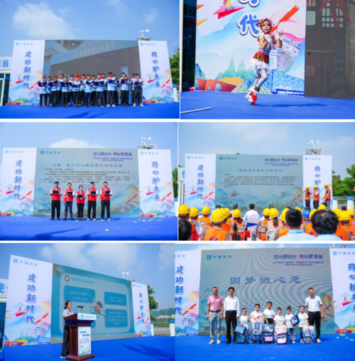 活动在观看《2018-2024年中建集团留守儿童活动》的视频中拉开序幕,大家共同见证中建集团在关爱关注留守儿童健康成长方面做出的努力和贡献。韦惠主任结合一系列溺水案例,深入浅出地阐述了防溺水的重要性、预防措施及紧急情况下的自救互救技能。职工代表及其孩子共同宣读《亲子沟通承诺书》,许下了加强沟通、共建和谐家庭的美好承诺。5名青年志愿者宣读了《儿童、青少年心理健康关爱倡议书》,呼吁大家关心关爱孩子们心理健康,让孩子们健康快乐成长。3名工友代表宣读《我是法定监护人》承诺书,承诺加强与孩子的亲情沟通,给予孩子关心关爱。项目团队倾情献唱,与小朋友们热情互动,点燃全场热情。小朋友们还“一展身手”,带来各种舞蹈表演,展示了他们的天真可爱。与会领导为小朋友们发放了书包和礼物,祝福他们健康快乐成长,学有所成,并为工友代表发放了慰问品,感谢他们的辛勤付出。